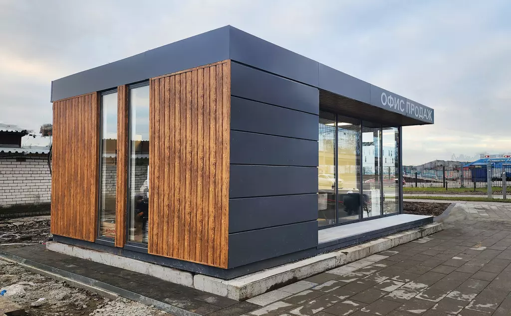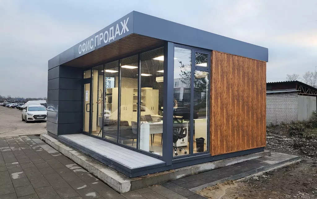 Office 34 — это современный модульный офис площадью 34 м², созданный для организации отдела продаж, клиентских сервисов или временных представительств. Благодаря стильному фасаду с витражным остеклением и отделке под дерево здание выглядит современно и презентабельно, формируя положительное впечатление у клиентов с первых минут.